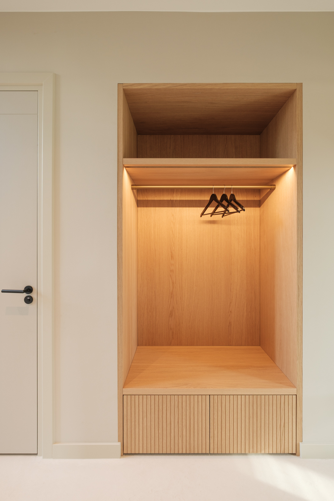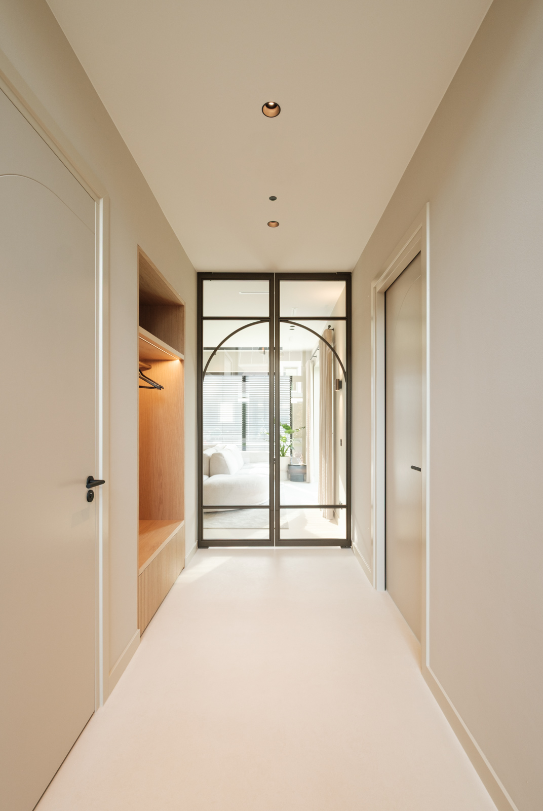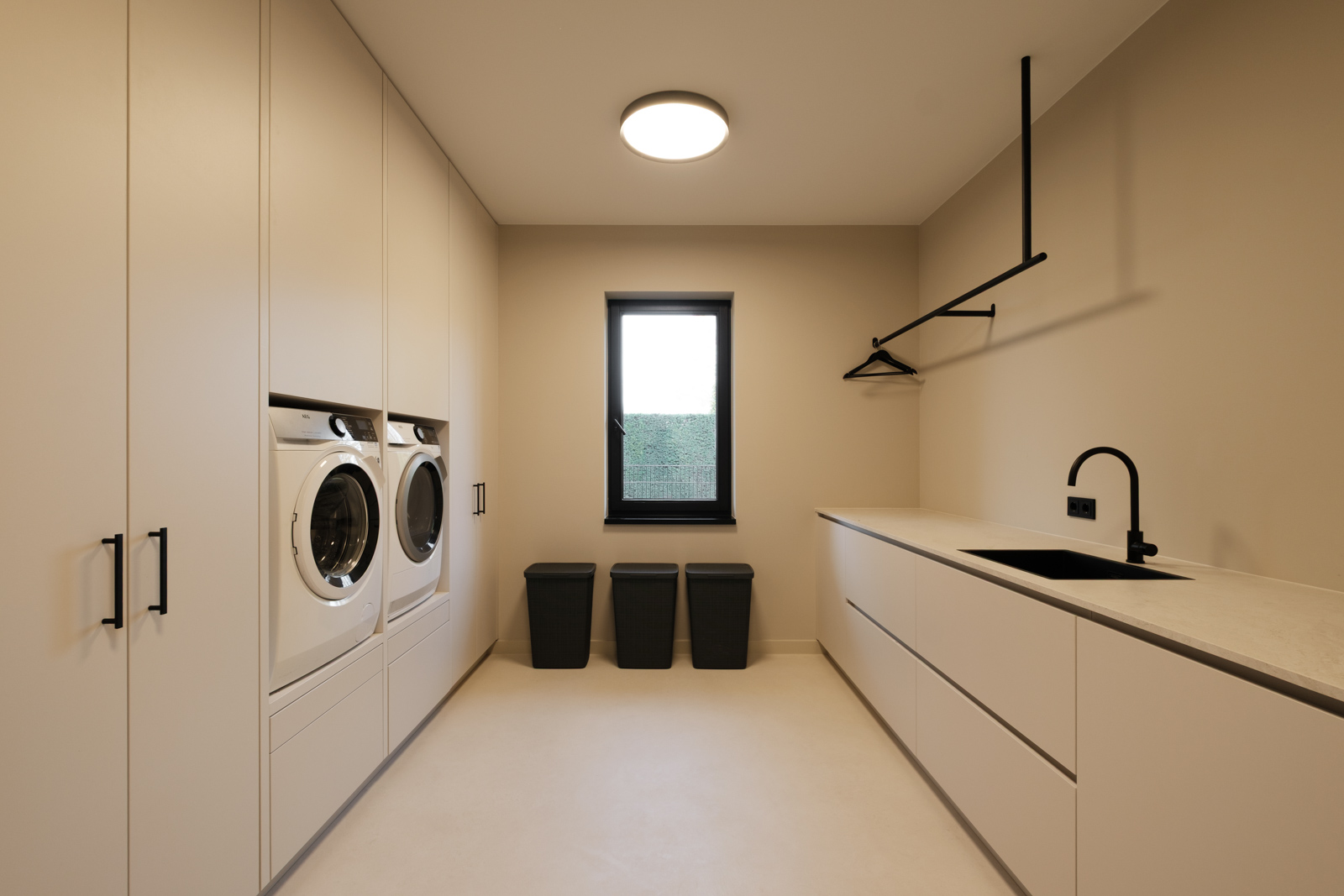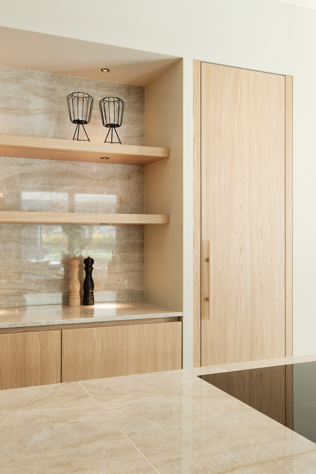 "Contrast bleek de rode draad voor dit ontwerp.", vertelt onze ontwerper Mariëlle. Voor deze woning mochten we het ontwerp en de realisatie van het maatwerk uitvoeren. Het ontwerp is een combinatie van frisse lichte en sfeervolle donkere kleuren en materialen. Mariëlle: “Ons uitgangspunt in het ontwerpproces was om met materialen een eenheid te vormen en zo bepaalde details in verschillende elementen van de woning terug te brengen.” Van de frisse badkamer tot aan de stijlvolle televisiewand; of je nu in een chique of stoere ruimte bent, met deze terugkerende elementen wordt dit project niet zomaar een verzameling kamers. Het wordt één geheel, een thuis.