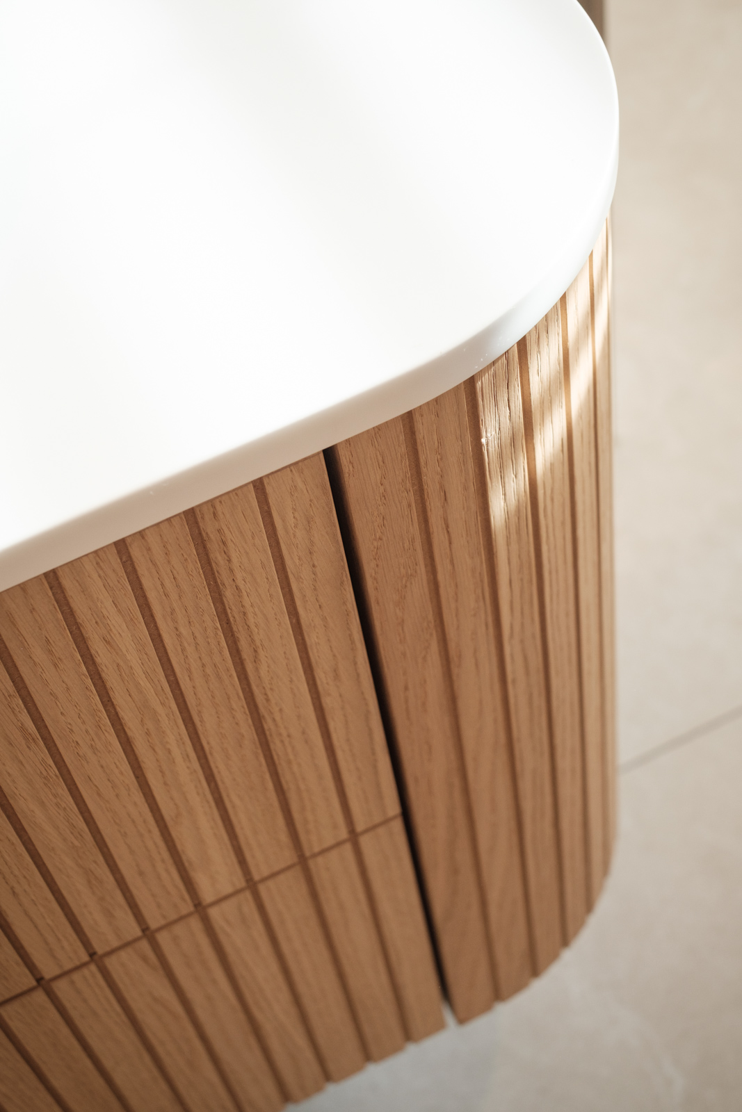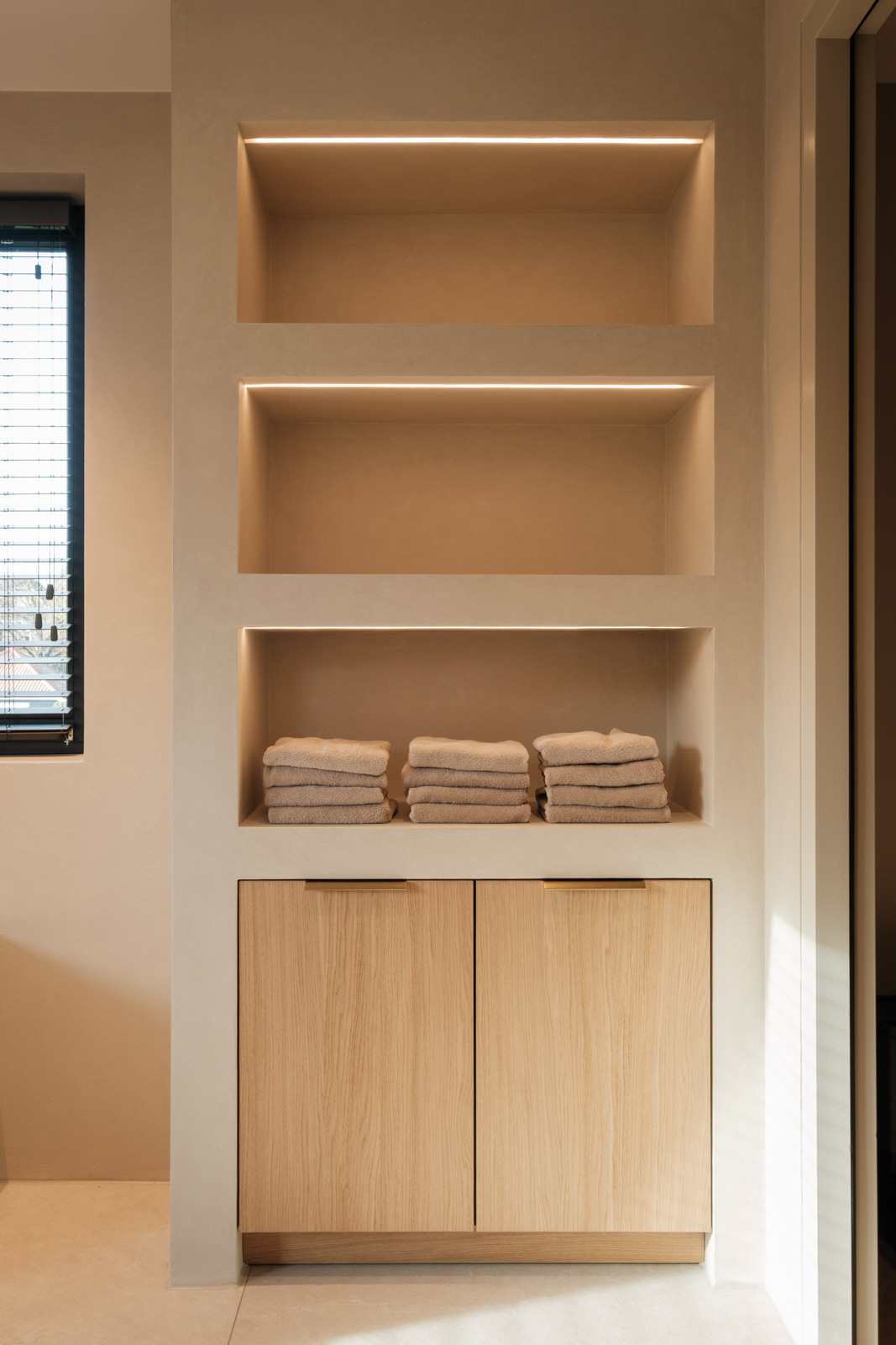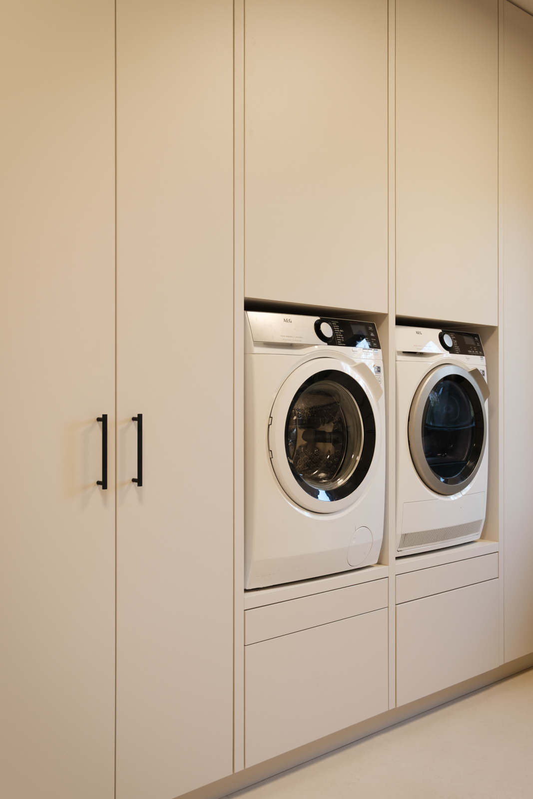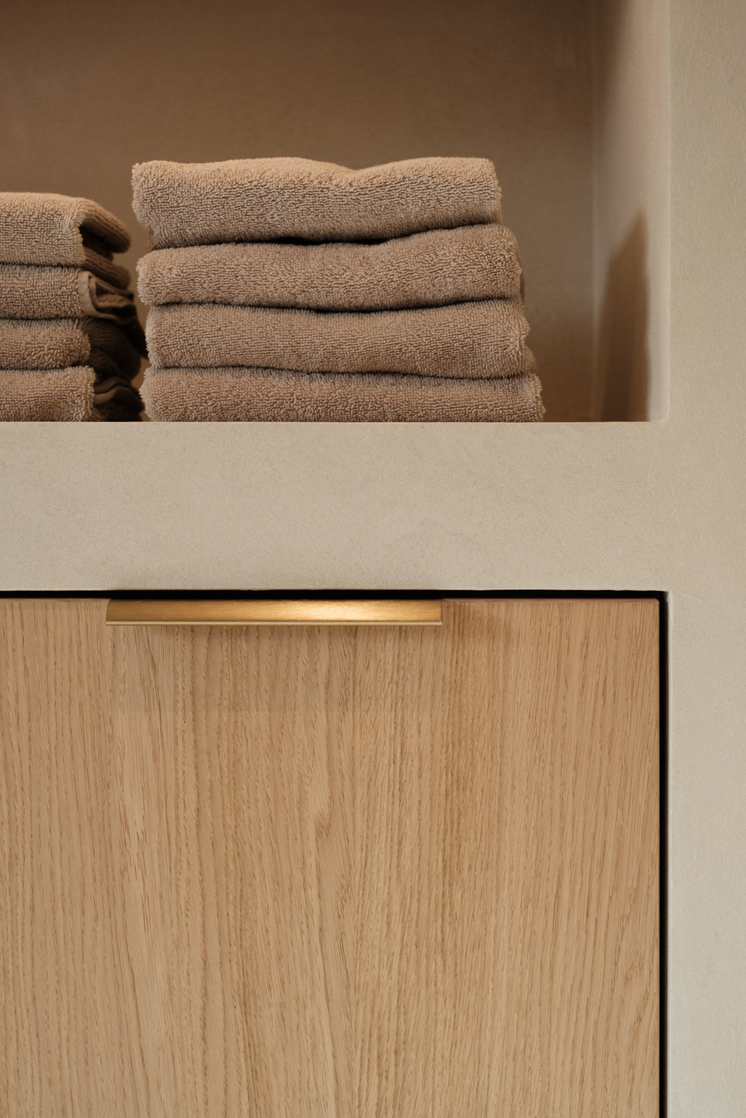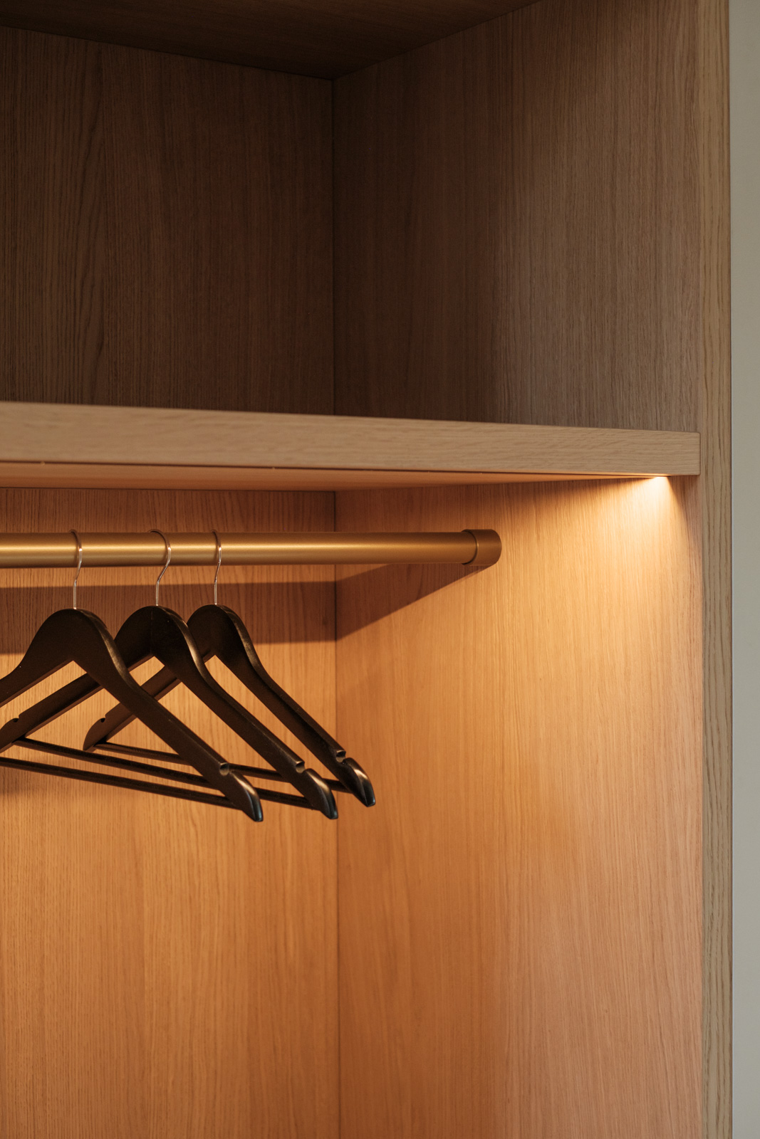 "Contrast bleek de rode draad voor dit ontwerp.", vertelt onze ontwerper Mariëlle. Voor deze woning mochten we het ontwerp en de realisatie van het maatwerk uitvoeren. Het ontwerp is een combinatie van frisse lichte en sfeervolle donkere kleuren en materialen. Mariëlle: “Ons uitgangspunt in het ontwerpproces was om met materialen een eenheid te vormen en zo bepaalde details in verschillende elementen van de woning terug te brengen.” Van de frisse badkamer tot aan de stijlvolle televisiewand; of je nu in een chique of stoere ruimte bent, met deze terugkerende elementen wordt dit project niet zomaar een verzameling kamers. Het wordt één geheel, een thuis.