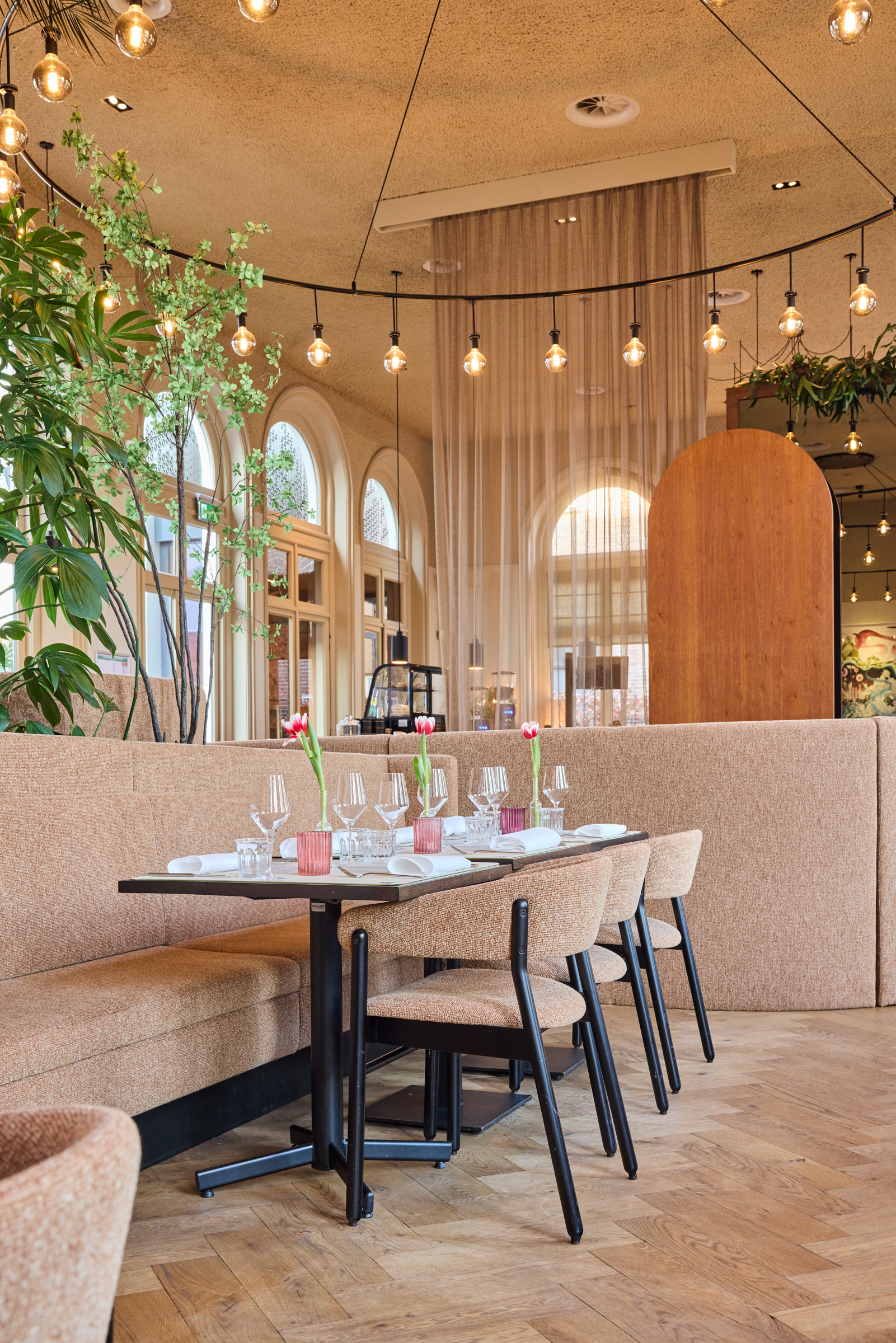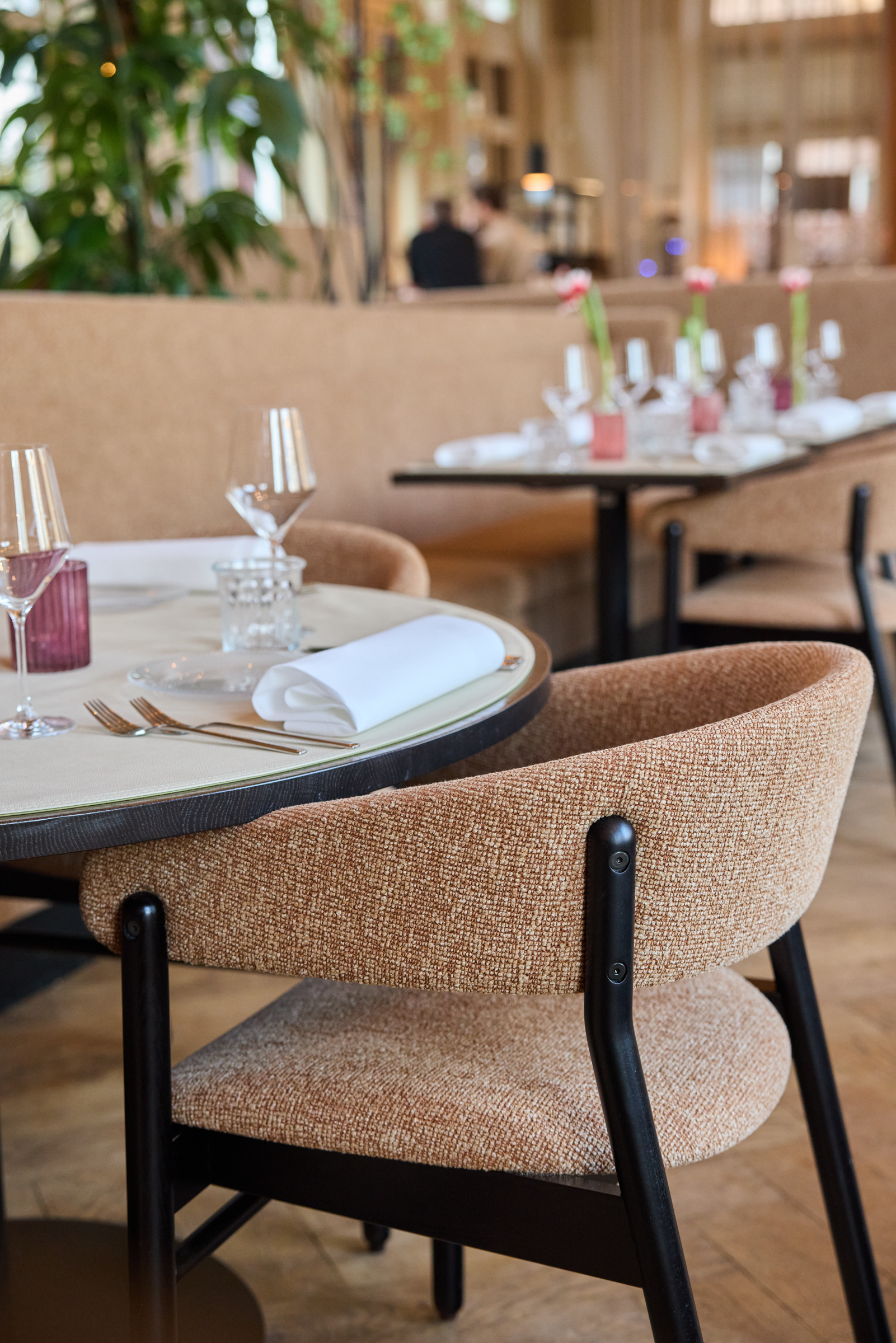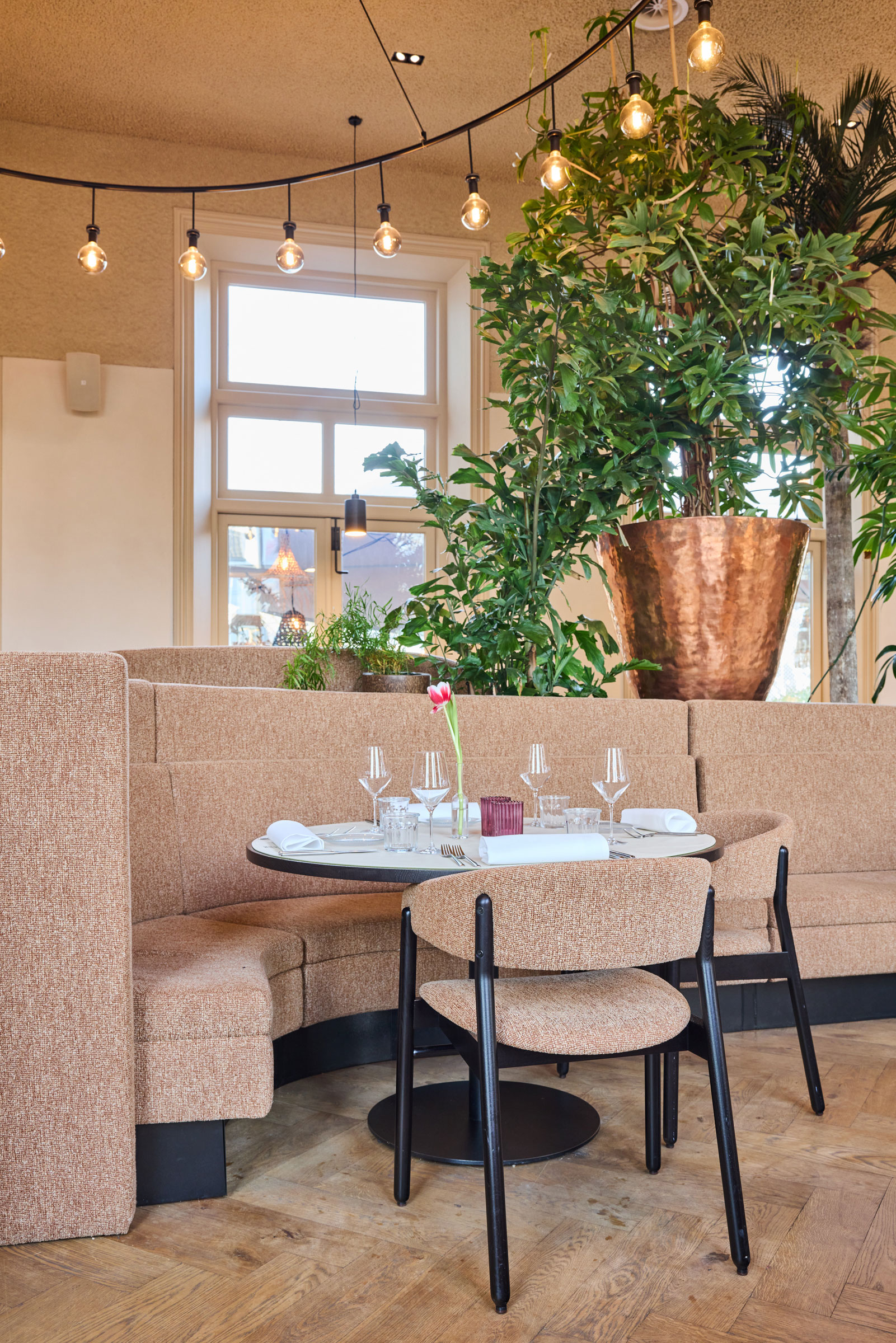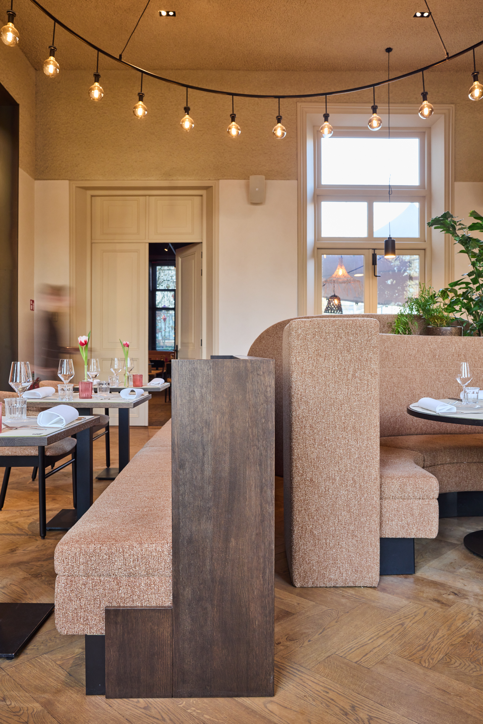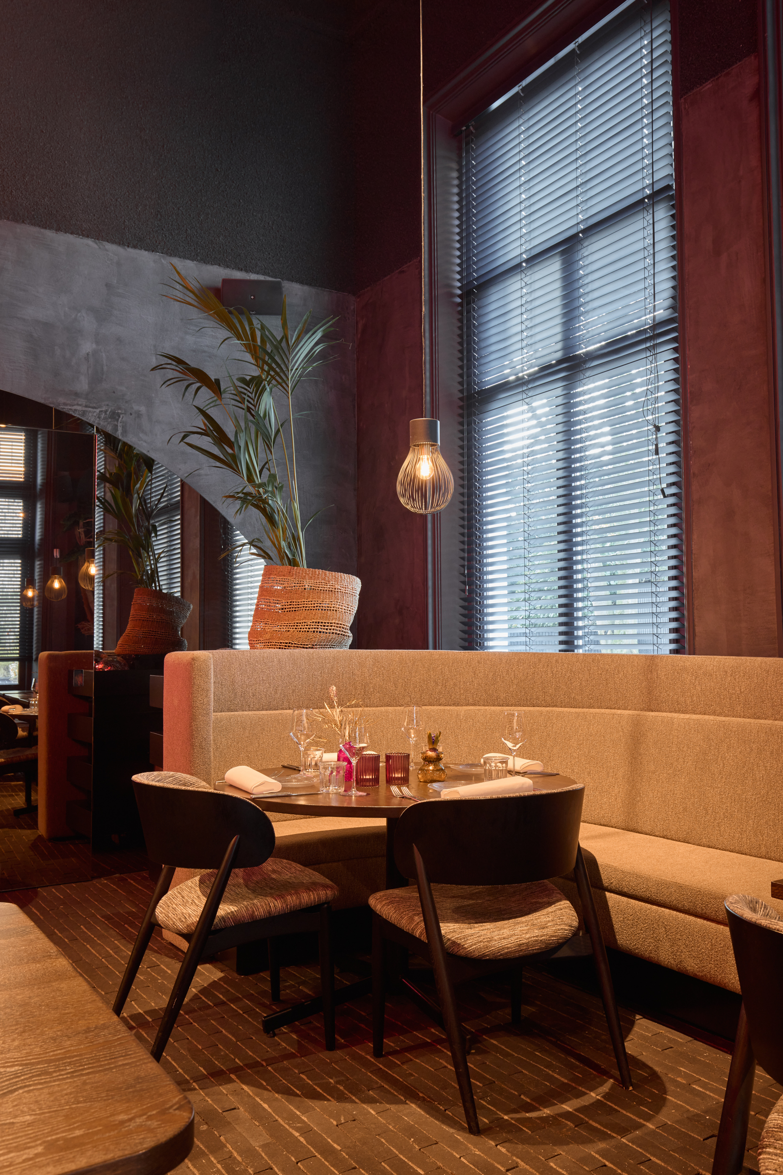 Dit sfeervolle restaurant kreeg een nieuwe uitstraling dankzij een aantal aanpassingen én nieuw maatwerk interieur. In 2020 realiseerden we al het volledige restaurantinterieur. Nu hebben we het geheel verfijnd en opgefrist. Gestoffeerde banken met houten ombouw zorgen voor comfortabele zitplekken en een luxe uitstraling. Voor de hoge ramen aan de voorzijde van het pand zijn maatwerk vitrines geplaatst. De ledverlichting is hier geïntegreerd in het stalen vitrineframe. De bar is strak afgewerkt met een combinatie van hout en microcement. De luxe toiletten, vernieuwde bars en het volledige geleverde meubilair maken het geheel warm, stijlvol en uitnodigend. Een plek waar je welkom bent op elk moment van de dag.