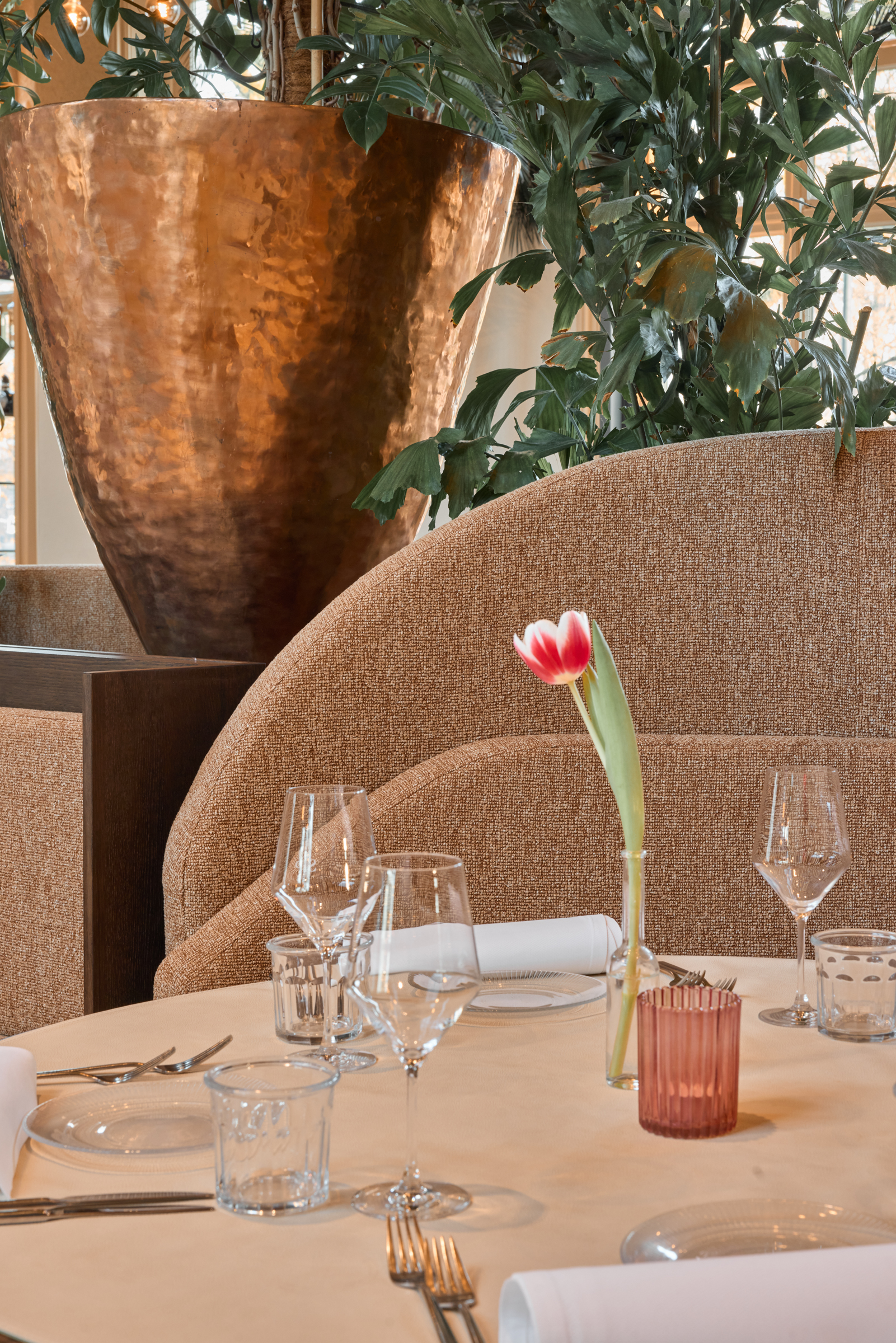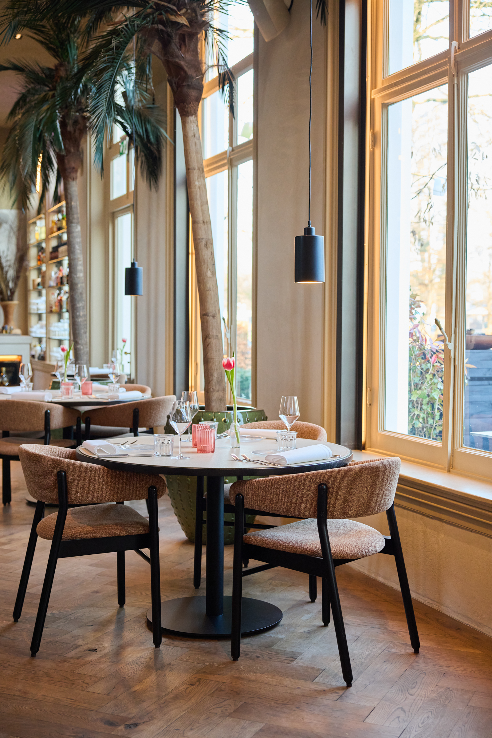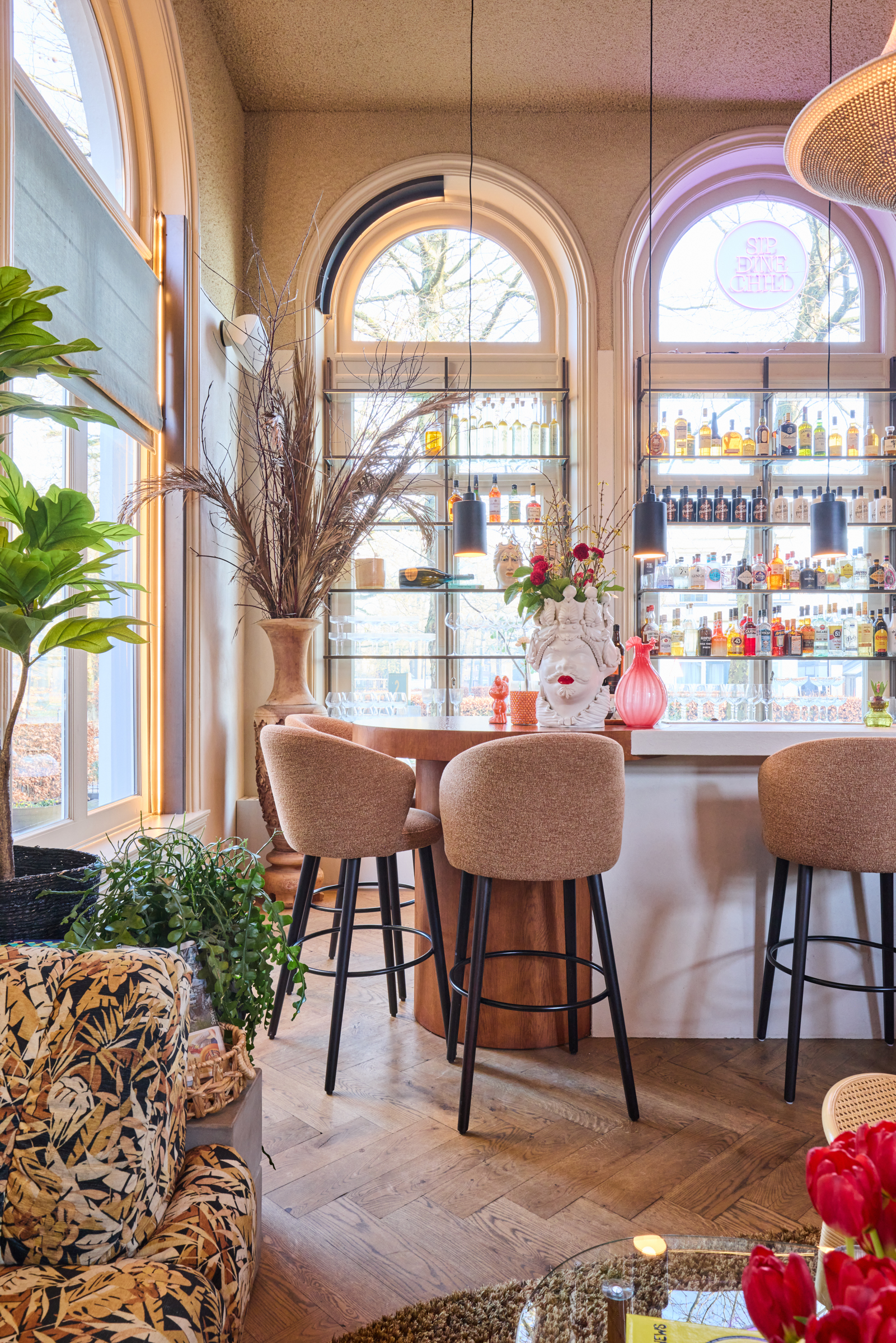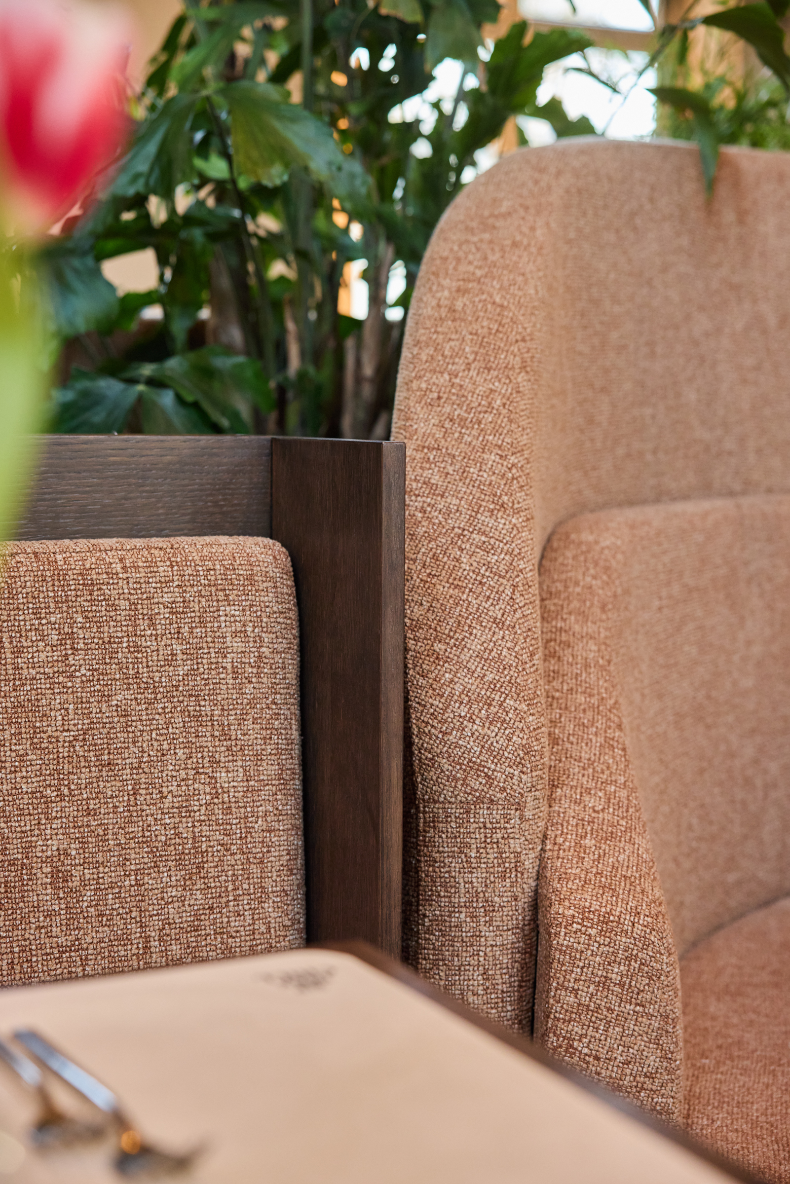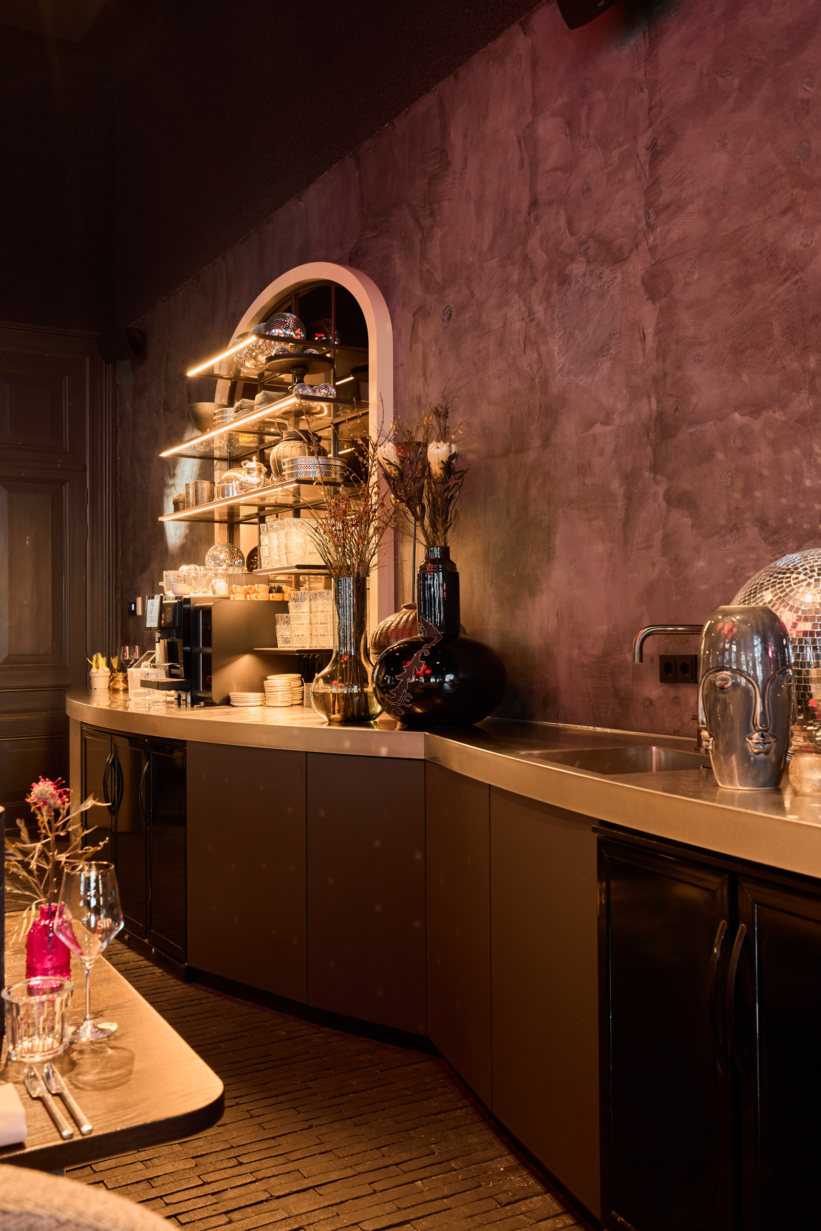Dit sfeervolle restaurant kreeg een nieuwe uitstraling dankzij een aantal aanpassingen én nieuw maatwerk interieur. In 2020 realiseerden we al het volledige restaurantinterieur. Nu hebben we het geheel verfijnd en opgefrist. Gestoffeerde banken met houten ombouw zorgen voor comfortabele zitplekken en een luxe uitstraling. Voor de hoge ramen aan de voorzijde van het pand zijn maatwerk vitrines geplaatst. De ledverlichting is hier geïntegreerd in het stalen vitrineframe. De bar is strak afgewerkt met een combinatie van hout en microcement. De luxe toiletten, vernieuwde bars en het volledige geleverde meubilair maken het geheel warm, stijlvol en uitnodigend. Een plek waar je welkom bent op elk moment van de dag.